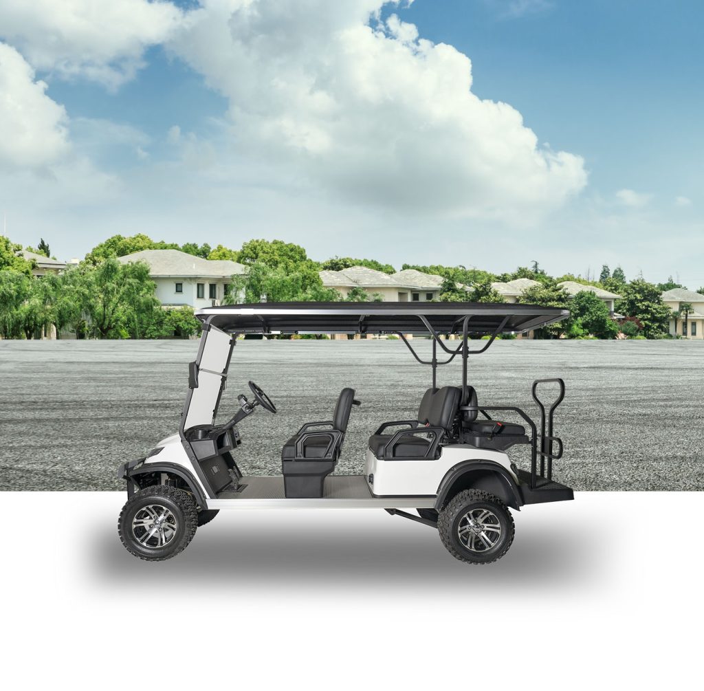 The Jett HR6 is our premium six seat cart in a non-lifted format. It features a powerful 5KW motor made by Toyota, providing ample power and reliability. To ensure a smooth ride, the cart is equipped with McPherson independent suspension with helical spring + cylinder hydraulic shock absorption. The Jett is ideal for luxury journeys for larger groups and VIP’s