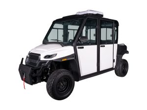This is a workhorse lifted utility for four persons. The cart has a 48v/15kw motor to ensure it has enough power for your everyday needs and the cargo box size is: 73cm x 107cm x 26.5cm. The cart comes with all round disc brakes and seat belts. the AC unit is customised for the GCC climate.