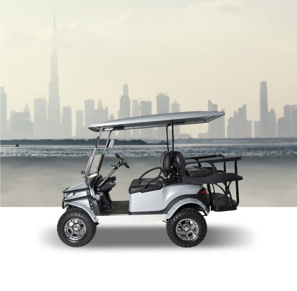Price available on requestFully refurbished lifted four seat Club Car Precedent featuring a brand new long roof, body panels, seats, and dashboard—all made in the USA. Additionally, it includes all-new suspension components, wheels, batteries, windscreen, LED lights, side mirrors, steering wheel, and floor mats. Equipped with a Digital Key connected to an app for added convenience.