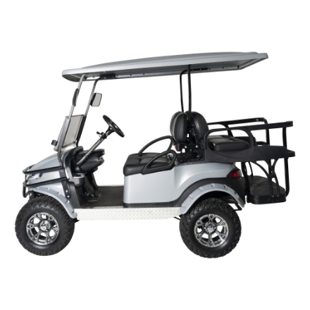 Price available on requestFully refurbished lifted four seat Club Car Precedent featuring a brand new long roof, body panels, seats, and dashboard—all made in the USA. Additionally, it includes all-new suspension components, wheels, batteries, windscreen, LED lights, side mirrors, steering wheel, and floor mats. Equipped with a Digital Key connected to an app for added convenience.
