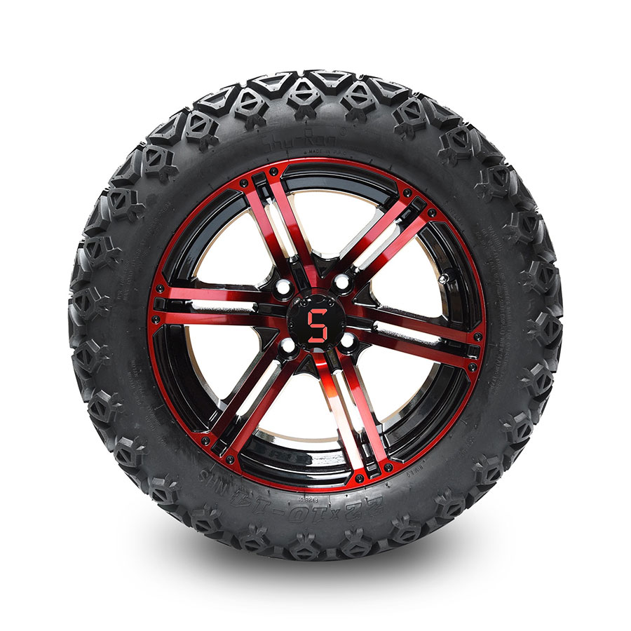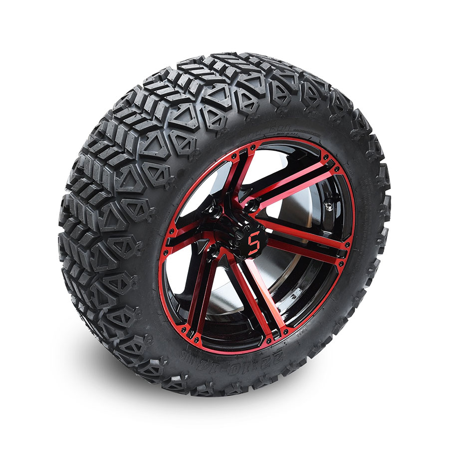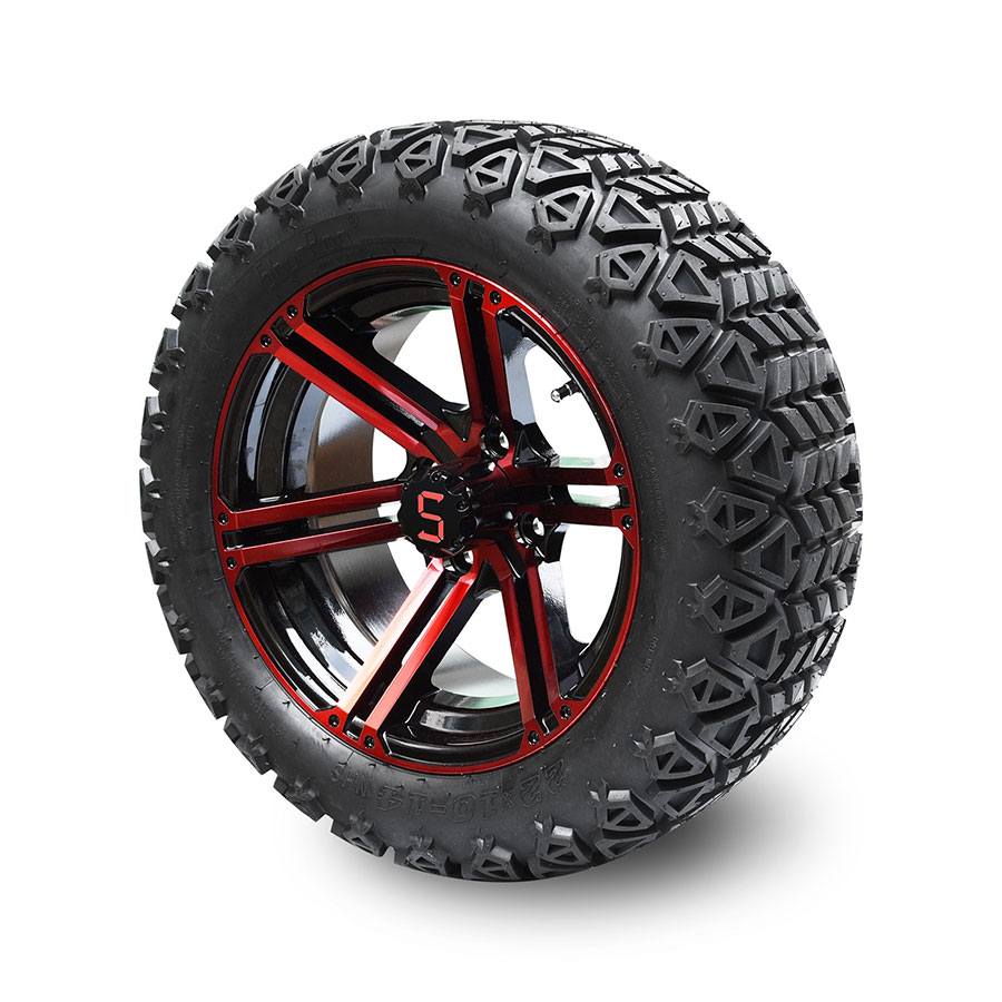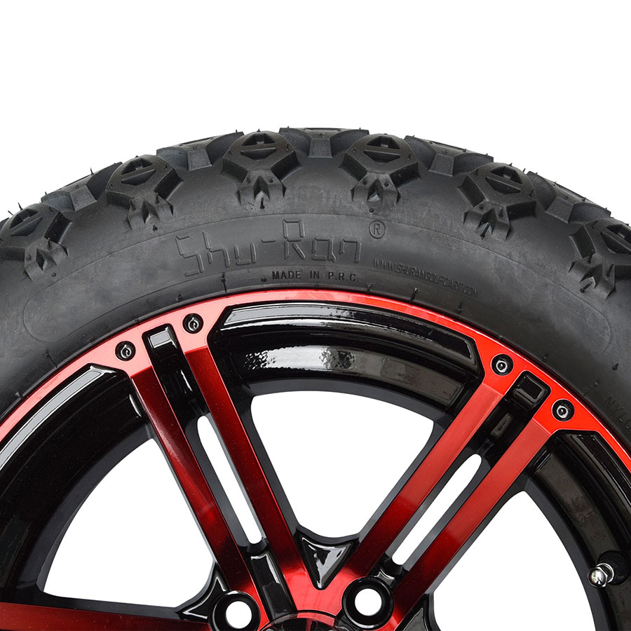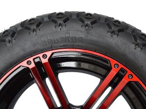 | DESCRIPTION: | 12-inch tyre and wheel combo in Red and Glossy Black. Ideal for a lifted or non-lifted cart. |