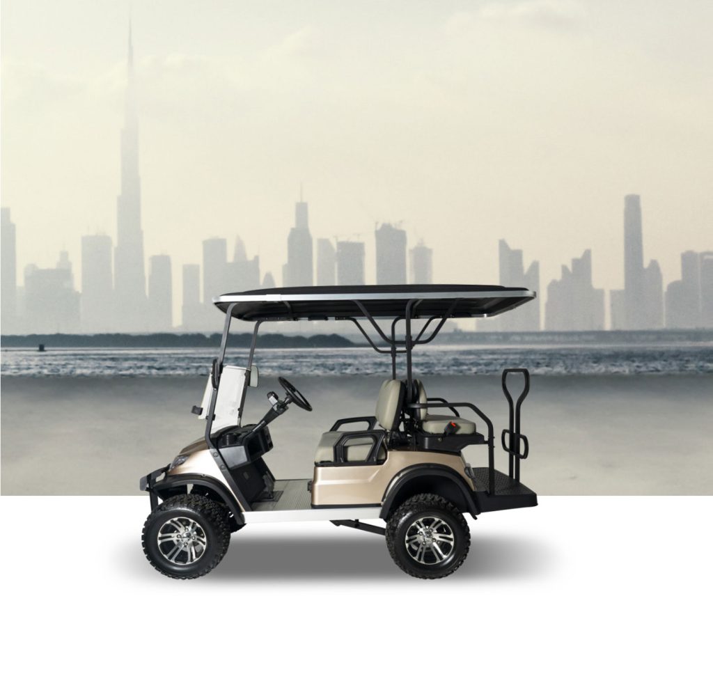 The Jett HR4 is our premium four seat cart in a lifted format. It features a powerful 5KW motor, providing both ample power and reliability. To ensure a smooth ride, the cart is equipped with McPherson independent suspension with helical spring + cylinder hydraulic shock absorption. In the lifted format the cart comes with larger wheels and has a lift kit to give it that off-road look. The Jett is ideal for luxury community journeys!