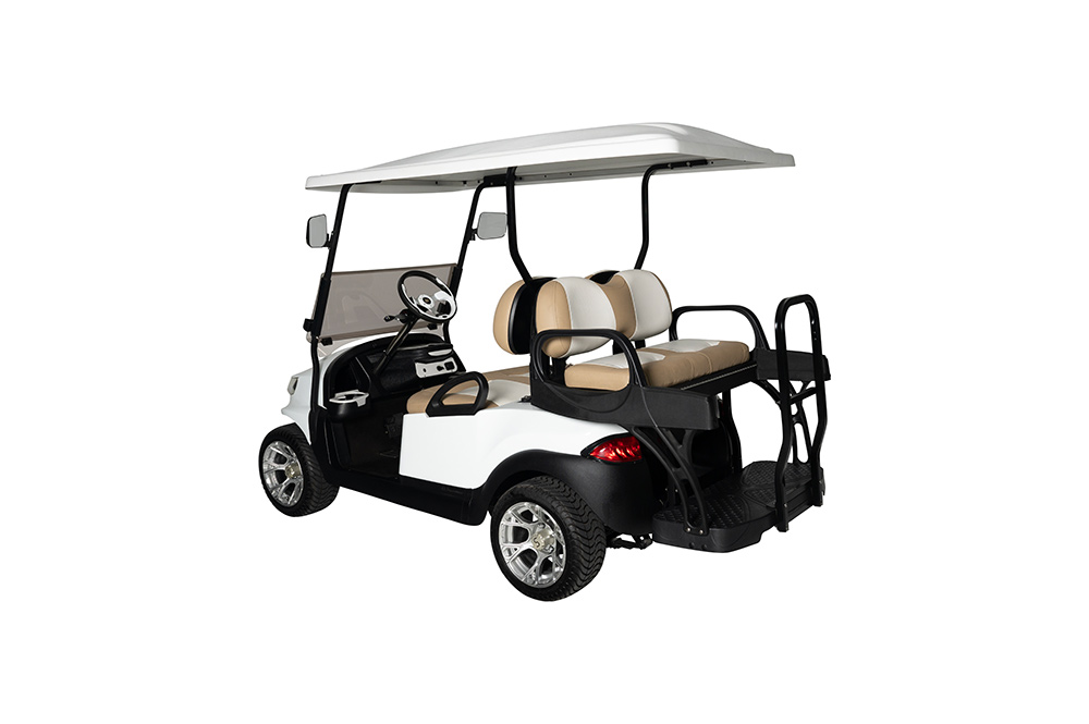 The Trekk is built on a club car base and undergoes a comprehensive rebuild, with new long-lasting Teflon bushes replacing the old ones. Additionally, all steering and suspension components are replaced, and the carts undergo a full respray and re-upholstery. New LED lights, windshields, alloy wheels, floor mats, and batteries are fitted.